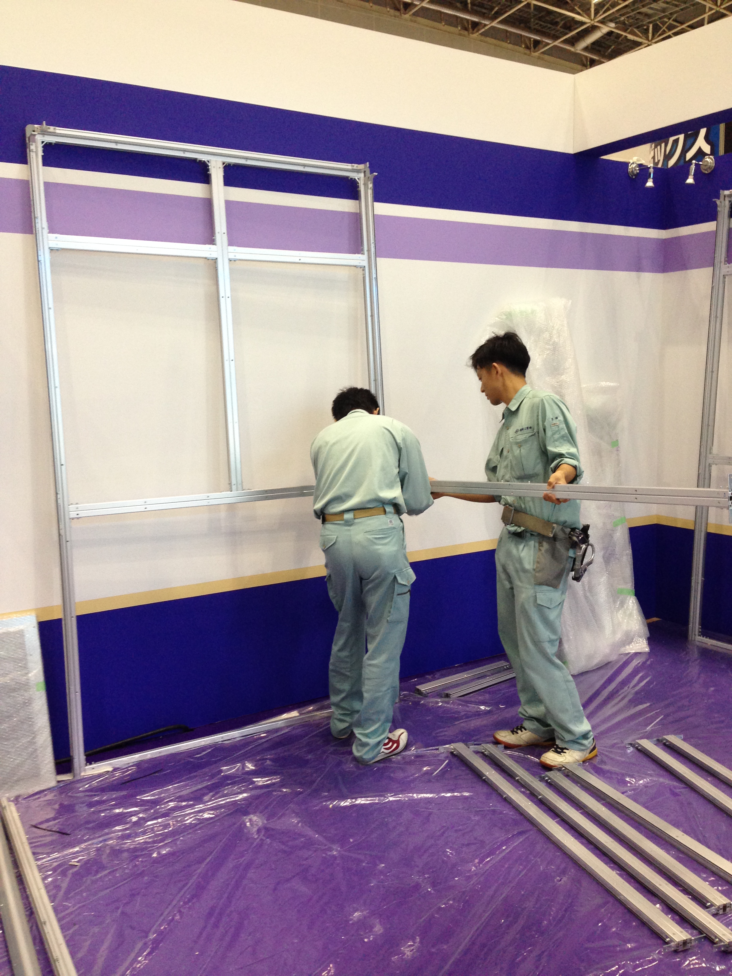 前日(27日)、製造部のメンバーが朝早くから設営してくれました。