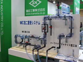 今回はクリーンブースと表面処理が同時出展なので、ブース全体は配色により分け、