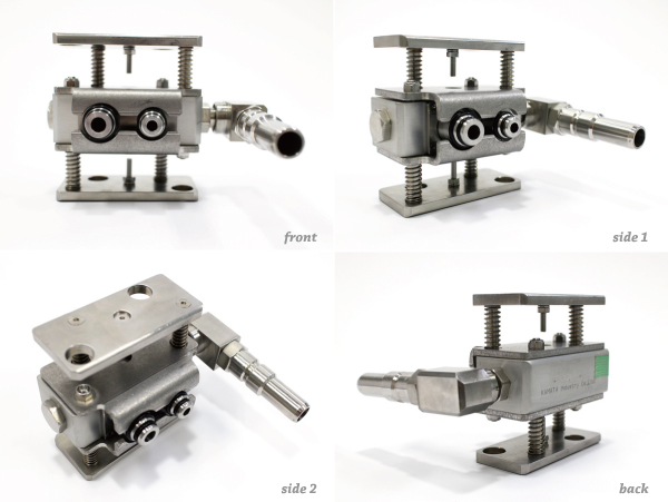 - ワークを2ヶ所同時にシールさせる構造。(2本の爪が平行移動して特殊メスコネクターをロックする構造)