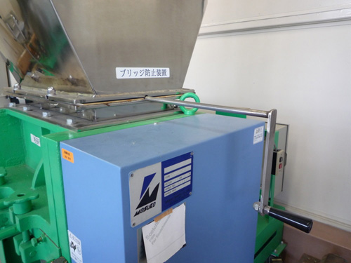 (投入口、排出口、ブリッジ防止装置、移動用キャスター取り付け等) - カッターミル内部で樹脂板がブリッジ状に詰まってしまう事を防止するため、ブリッジ防止装置をつける。