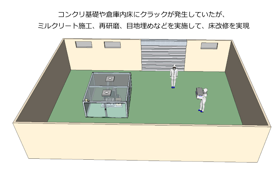 さらに、床からの発塵を抑えるための床改修工事もご提案しました。