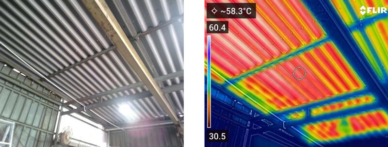 工場屋根裏の結露対策。熱交換塗料を使用した屋根塗装を実施して省エネも実現