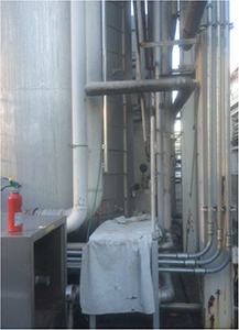 現場溶接を最小限に、タンク点検用梯子と安全柵の取り付け