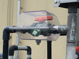 バルブからの薬液飛散防止!誤操作も防ぐ透明安全カバー