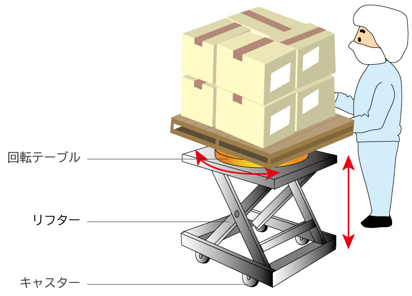回転テーブル付きリフター台車の設計製作。腰痛解消・作業性の向上!