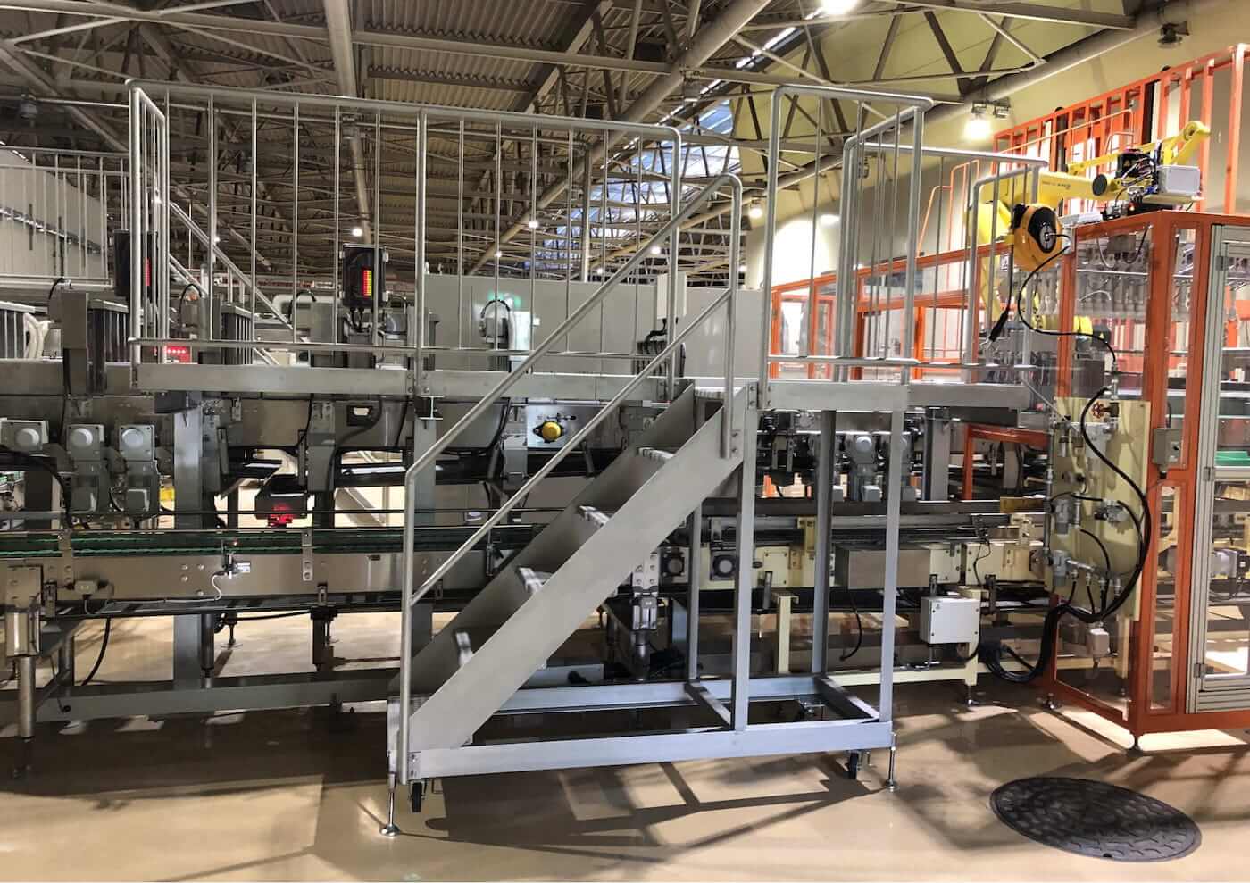 ペットボトルの搬送ライン-製品転倒トラブルを解消する特製ガイドプレート