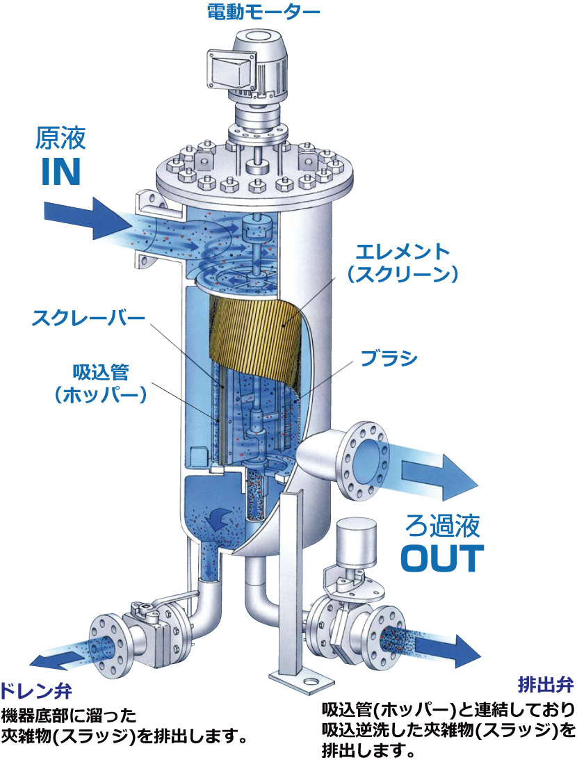 ストレーナーの自動洗浄で洗浄時間の手間を削減!